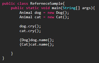 (Dog)dog.name()으로 캐스팅하여 사용할 수 있다.