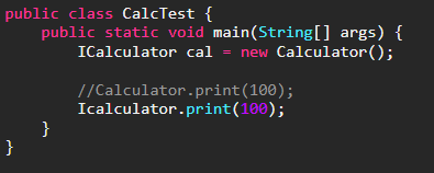 정적 메서드를 사용할 때는 인터페이스를 직접 참조하여 사용한다.