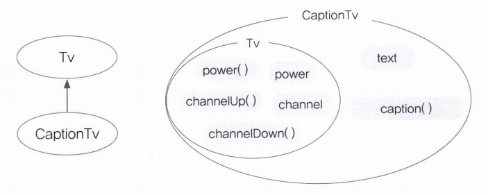 Tv클래스와 CaptionTv클래스가 이와 같이 정의되어 있을 때, 두 클래스간의 관계를 그림으로 나타내면 아래와 같다.