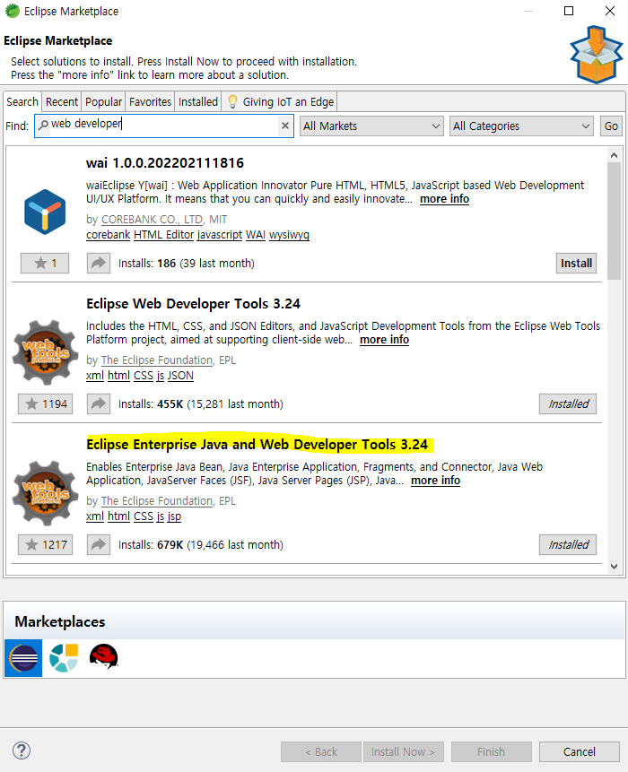 web developer를 검색 후 Eclipse Enterprise Java and Web Developer Tools