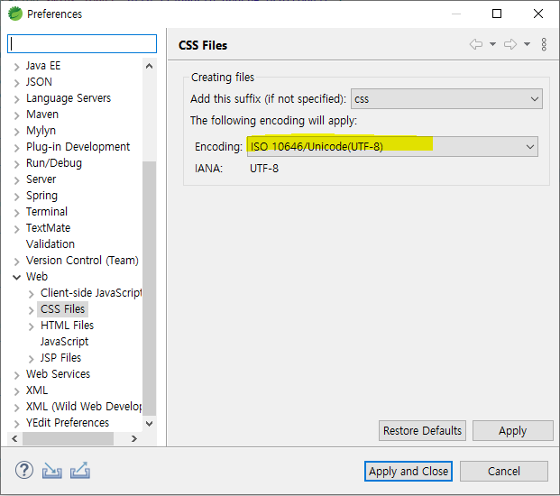 WEB-CSS Files / HTML Files / JSP Files 의 Encoding을