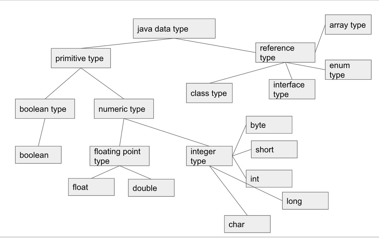 정수 타입에는 byte, char, short, int, long이 있고, 실수 타입에는 float, double이 있다.