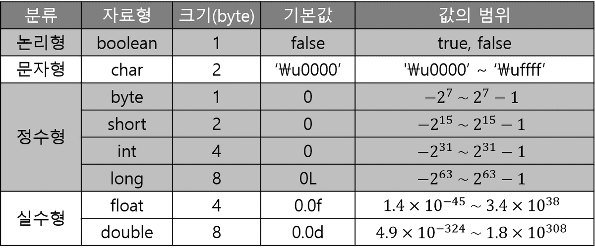 - 프리미티브 타입 종류와 값의 범위 그리고 기본 값