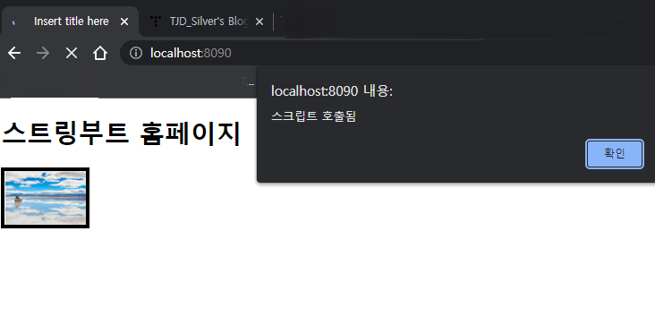 -img추가, img에 css(width, border)추가, js(alert(스크립트 호출됨)적용