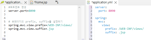 -application.properties 외에도 일반 파일에 .yml확장자로 새로운 파일을 만들어서 아래와 같이 만들어도 servlet-context.xml에서 설정하는 것과 같은 설정을 할 수 있다.