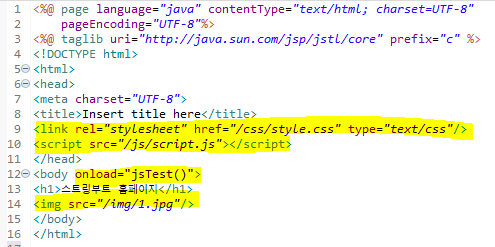 -사용하려는 외부파일의 폴더를 webapp의 하위에 만들어주고 그 아래 파일을 만든 후 html에서 사용하는 방식으로 jsp파일에 입력 후 서버를 실행하면 된다.