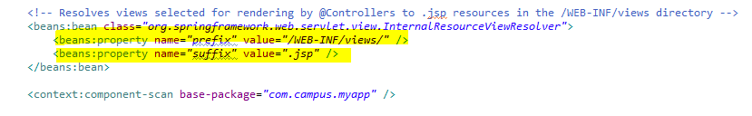 -JSP경로를 prefix로 선언 확장자를 suffix로 선언할 수 있다.