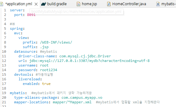 -application.yml에 mybatis와 자동재실행 설정