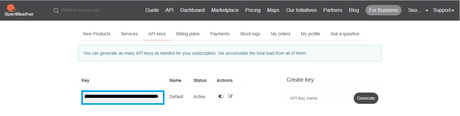 -해당 사이트에 회원가입 후 아이디를 클릭 후 My API keys 탭을 클릭 한 다음